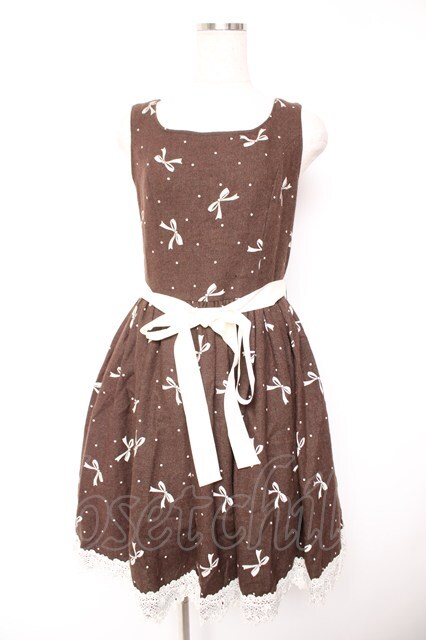 KATHARSIS / リボン柄ワンピース 茶 Y-25-12-23-120-LO-OP-SZ-ZY
