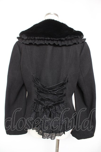 axes femme / ファー襟付編上ショートコート 黒 Y-25-12-23-128-AX-CO-SZ-ZY