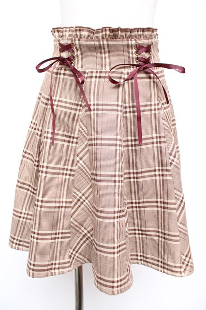 Amavel / Wレースアップはぎフレアスカート F ブラウン Y-25-12-23-148-CA-SK-SZ-ZY