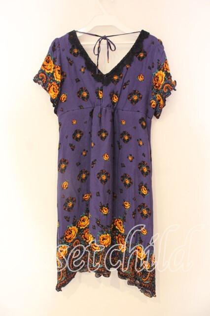 axes femme / Vネック花柄ワンピース ネイビー O-25-12-22-1007-AX-OP-IG-OS