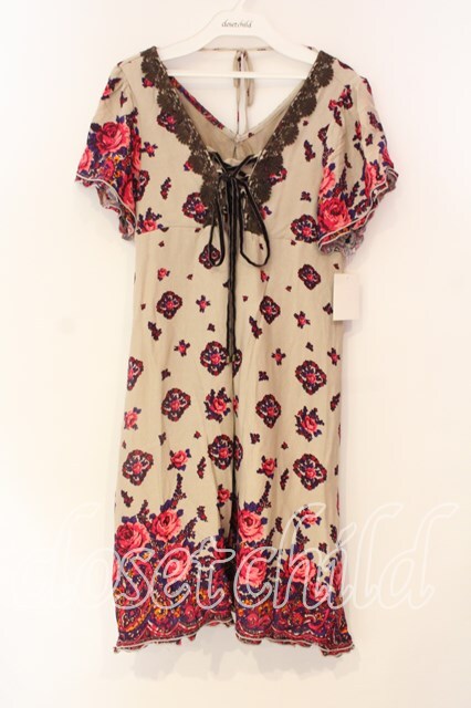 axes femme / Vネック花柄ワンピース M ベージュ O-25-12-22-1012-AX-OP-IG-OS