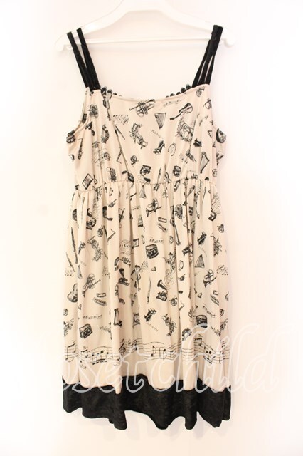 axes femme / 楽器柄キャミワンピース M ベージュ O-25-12-22-1013-AX-OP-IG-OS