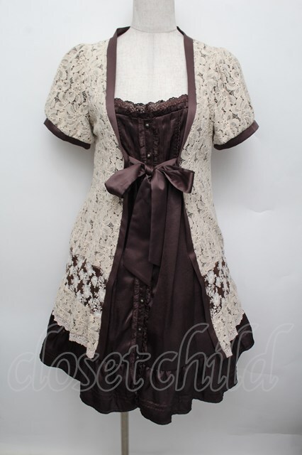 axes femme / レースレイヤードワンピース ブラウン S-25-12-23-026-AX-OP-HR-ZS