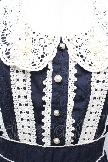 axes femme / コットン刺繍ワンピース 紺 S-25-12-23-030-AX-OP-HR-ZS
