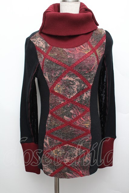 Ozz oneste / リブ切替ニットトップス 黒xワイン S-25-12-23-031-OO-TO-AS-ZS [戻る]