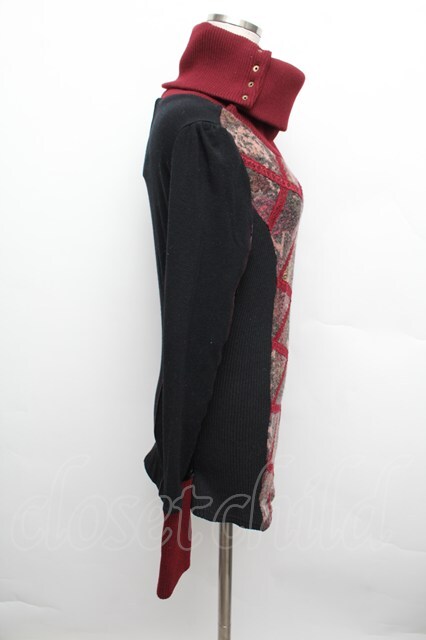 Ozz oneste / リブ切替ニットトップス 黒xワイン S-25-12-23-031-OO-TO-AS-ZS