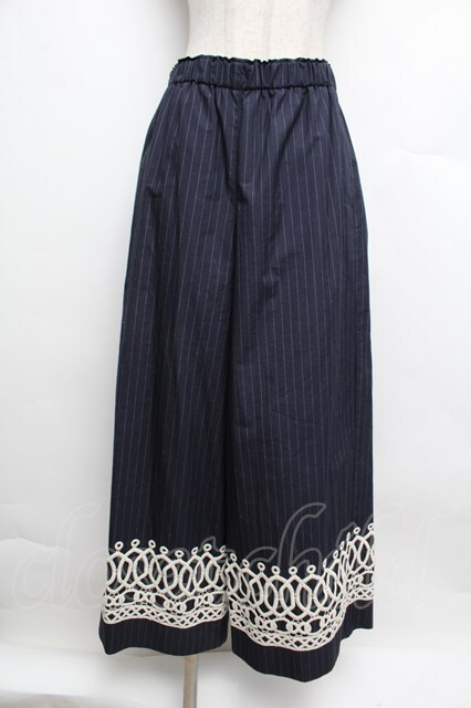 Jane Marple Dans Le Salon / ピンストライプとヴィンテージレースのパンツ 紺 S-25-12-23-047-JM-PA-AS-ZS