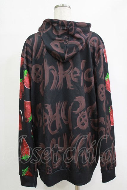 NieR Clothing / 総柄プルパーカー 黒 H-25-12-25-1029-PU-TO-KB-ZH