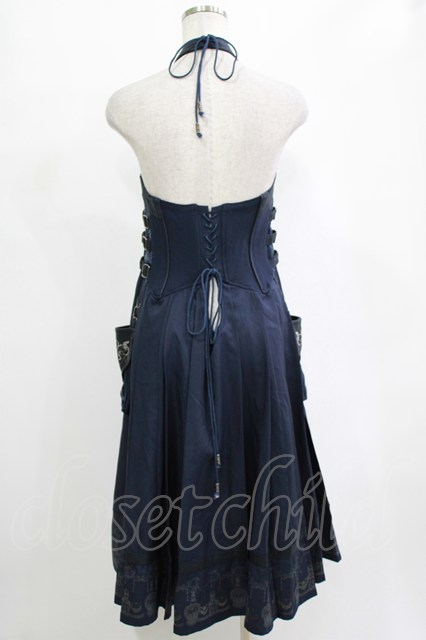 Ozz oneste / 薔薇刺繍ホルターオーバービスチェ ネイビー H-25-12-25-1015-OO-TO-KB-ZH