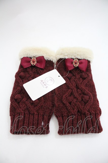axes femme / リボン付フェミニンニット手袋 ワイン I-25-12-22-120-AX-ZA-TE-ZI