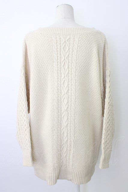 axes femme / 襟元パールニット M ベージュ T-25-12-26-007-AX-TO-SA-ZT
