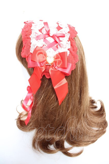 Angelic Pretty / レースハートチャームバラレースヘッドドレス レッド Y-25-12-25-094-AP-AC-SZ-ZY