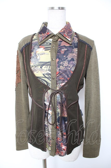 Ozz oneste / 和柄レイヤードトップス カーキ Y-25-12-25-111-OO-TO-SZ-ZY