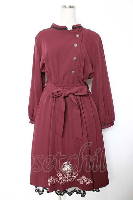 axes femme / フラワー刺繍連釦ワンピース F ワイン Y-25-12-25-133-AX-OP-SZ-ZY