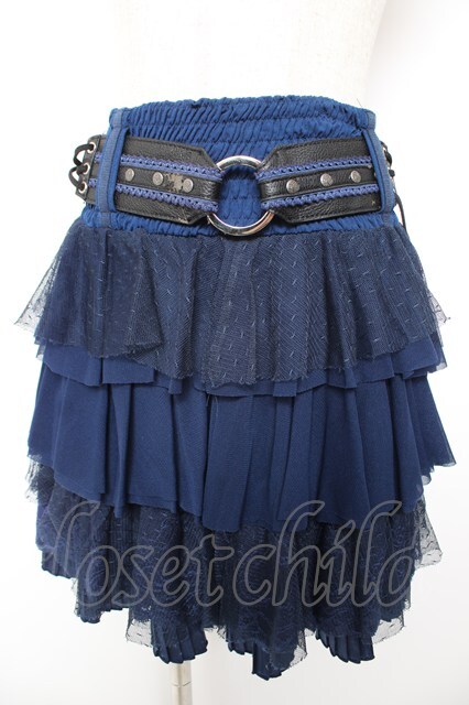 Ozz oneste / ベルト付きチュールレースフリルスカート 紺 Y-25-12-25-161-OO-SK-SZ-ZY