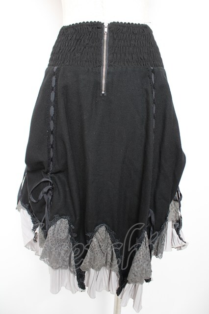 Ozz Croce / 裾プリーツギャザーフリルスカート 黒 Y-25-12-25-165-OO-SK-SZ-ZY