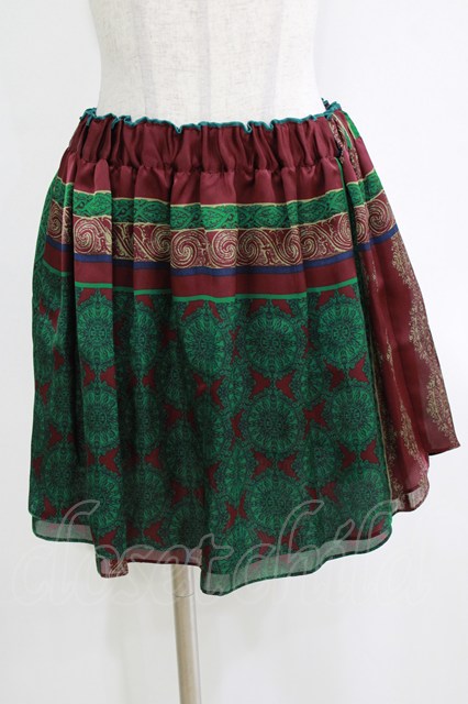 Jane Marple Dans Le Salon / プリントギャザースカート ボルドー H-26-01-04-056-JM-SK-KB-ZH