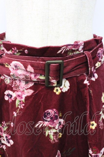 axes femme / 花柄プリントベロアスカート ボルドー T-25-12-25-024-AX-SK-SA-ZT