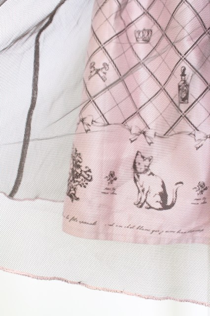 axes femme POETIQUE / チュール重ねねこ柄スカート M ピンク T-25-12-25-019-AX-SK-SA-ZT