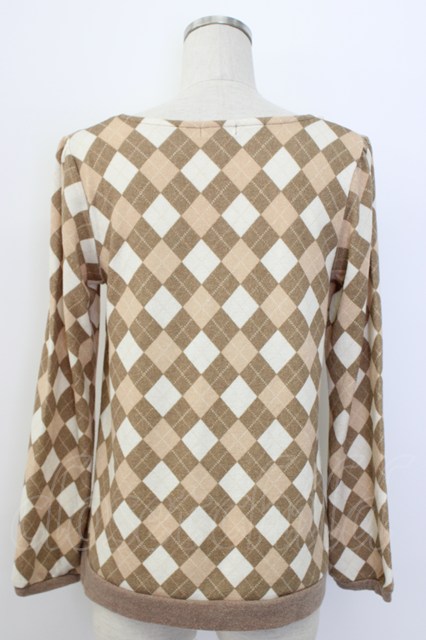axes femme / アーガイルニットトップス アイボリーXベージュ T-25-12-27-002-AX-TO-SA-ZT