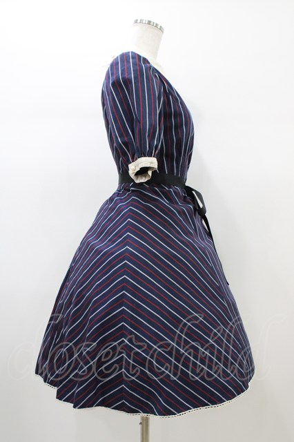Victorian maiden / レジメンタルストライプインタックリボンドレス Free ネイビー H-26-01-04-1030-CL-OP-NS-ZH [戻る]