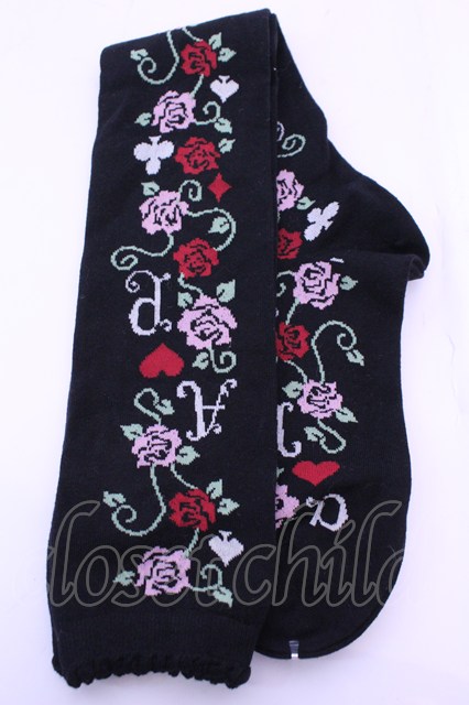 ALICE and the PIRATES / Hide-and-Seek with missin'Alice柄オーバーニーソックス クロ O-25-12-25-1032-PA-ZA-IG-OS