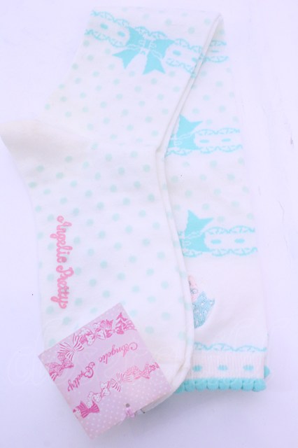 Angelic Pretty / ハートチャーム刺繍はしごレースハイソックス シロ×ミント O-25-12-25-1029-AP-ZA-IG-OS