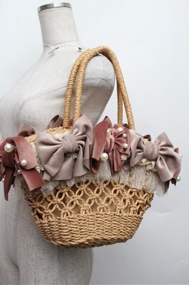 Hoshibako Works / ベロアリボンバスケット ベージュxピンク S-25-12-24-013-LO-OP-HR-ZS [戻る]
