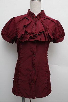 Ozz oneste / チャイナデザイン半袖ブラウス エンジ S-25-12-24-030-OO-BL-HR-ZS