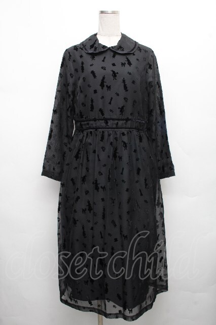 Jane Marple / Queen Aliceリボントリムドレス 黒 S-26-04-01-021-JM-OP-HR-ZS