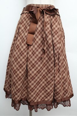 axes femme / タータンチェックスカート 茶 S-25-12-24-063-AX-SK-HR-ZS