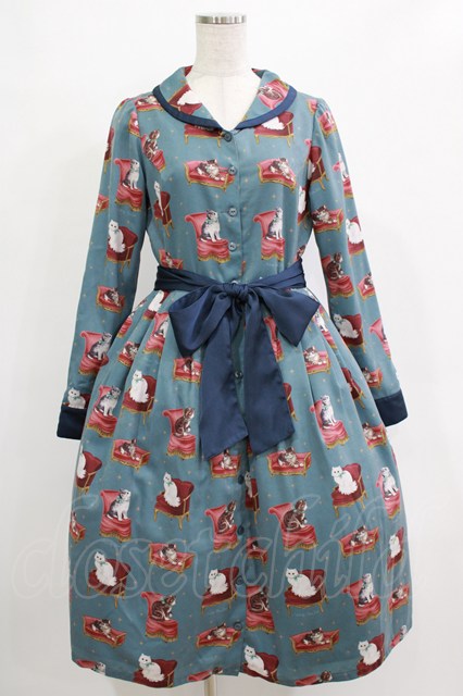 Melody BasKet / Cats castleフロントボタンワンピース M ブルーグリーン H-25-12-28-1001-LO-OP-KB-ZH