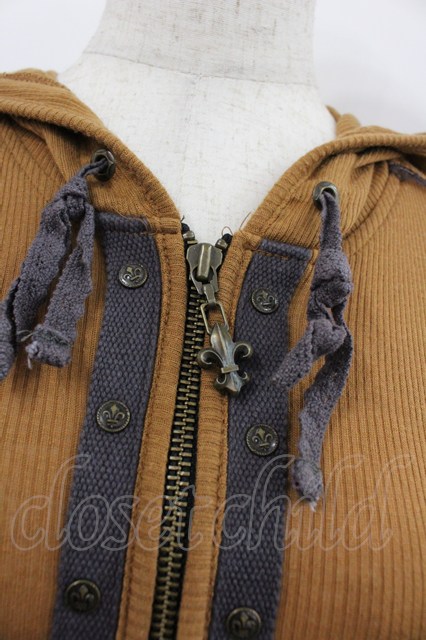 Ozz Croce / 百合紋章ZIPモチーフ半袖パーカーワンピース ブラウン I-25-12-24-101-OO-OP-SA-ZI