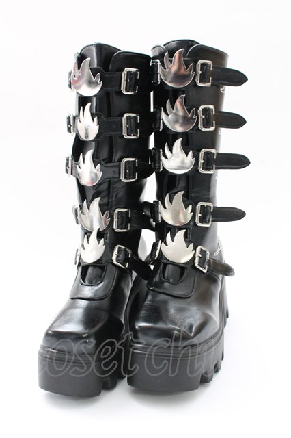 NieR Clothing / 内側防寒仕様厚底ロングブーツ 38 ブラック T-25-12-29-001-PU-SH-SA-ZT