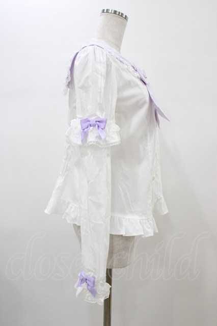 Angelic Pretty / Fancyスクール付け袖ブラウス Free シロ/ラベンダー H-26-01-05-1040-AP-BL-NS-ZH [戻る]
