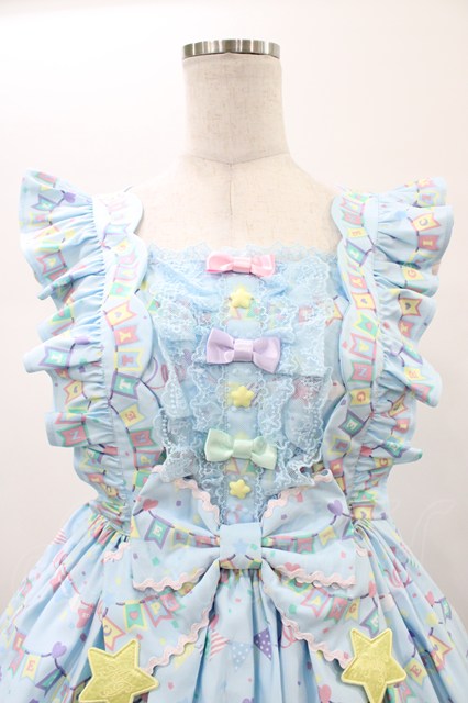 Angelic Pretty / Happy Garlandジャンパースカート Free サックス H-26-01-05-1053-AP-OP-NS-ZH [戻る]
