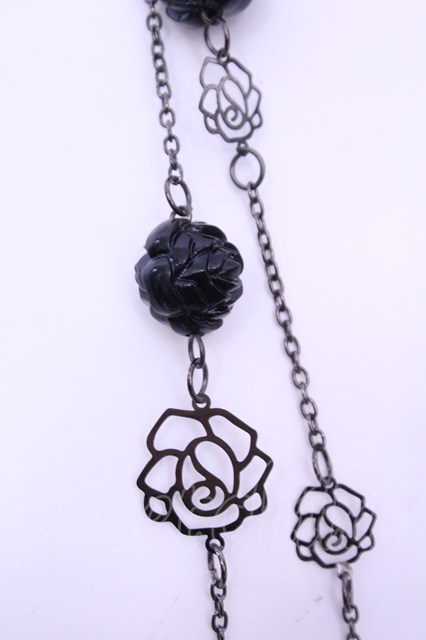 BPN / ローズフレームビーズネックレス ブラック×シルバー O-25-12-26-1004-GO-AC-IG-OS