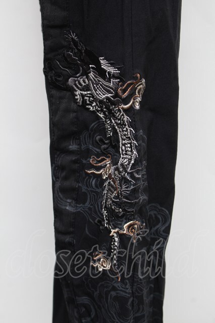 Ozz Croce / ドラゴン刺繍フレアパンツ 黒 S-25-12-25-062-OO-PA-HR-ZS
