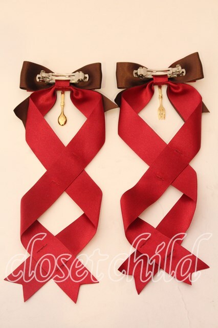 LOTUS ribbon / ツインテールリボンバレッタ アカ×ブラウン カトラリー O-25-12-26-063-EL-ZA-IG-OS