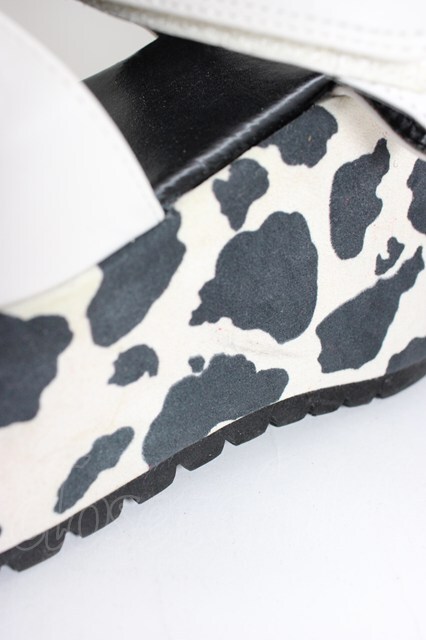YOSUKE / 牛柄厚底サンダル LL 黒X白 T-26-01-04-027-PU-SH-SA-ZT