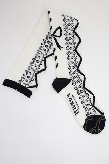 axes femme kawaii / レースアップ柄オーバーニー クロ T-26-01-04-009-AX-ZA-SA-ZT [戻る]