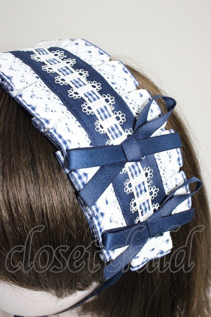 Snowdrop to Saint Maria / ギンガムチェックリボンヘッドドレス 紺X白 T-26-01-04-016-0-AC-SA-ZT