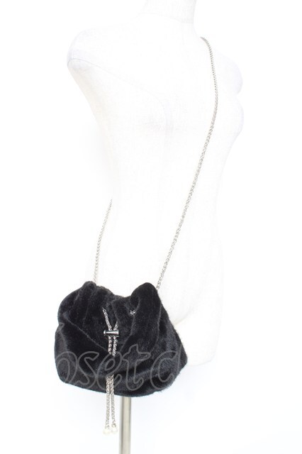 axes femme / チェーン使いファーバッグ 黒 Y-25-12-27-016-AX-BG-SZ-ZY