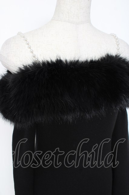 michellMacaron / ファーオフショルニットワンピース F ブラック Y-25-12-27-069-LO-OP-SZ-ZY