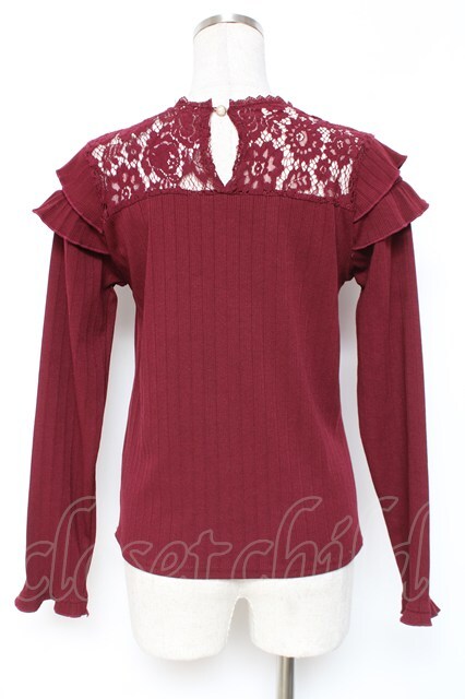 axes femme / 肩フリルリブカットソー M ワイン Y-25-12-27-048-AX-TO-SZ-ZY