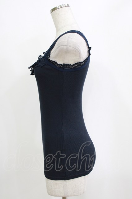 Ozz oneste / レース付リブキャミソール ネイビー H-26-01-06-067-OO-TO-KB-ZT0108H