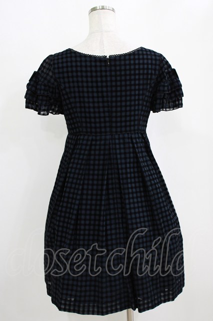 Emily Temple cute / フロッキーチェックフリルスリーブワンピース ネイビー H-26-01-06-013-ET-OP-KB-ZH