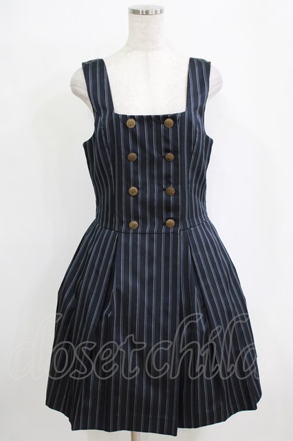 Jane Marple / レジメンタルストライプのダブルボタンジャンパースカート ネイビー H-26-01-06-008-JM-OP-KB-ZH