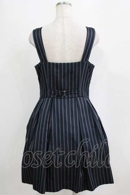 Jane Marple / レジメンタルストライプのダブルボタンジャンパースカート ネイビー H-26-01-06-008-JM-OP-KB-ZH
