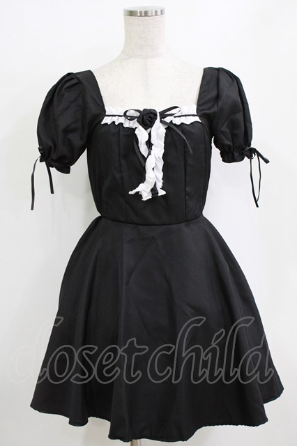 MARBLE / パニエ付きバラ飾りパフフリルワンピース ブラック×ホワイト H-26-01-06-029-GO-OP-KB-ZH